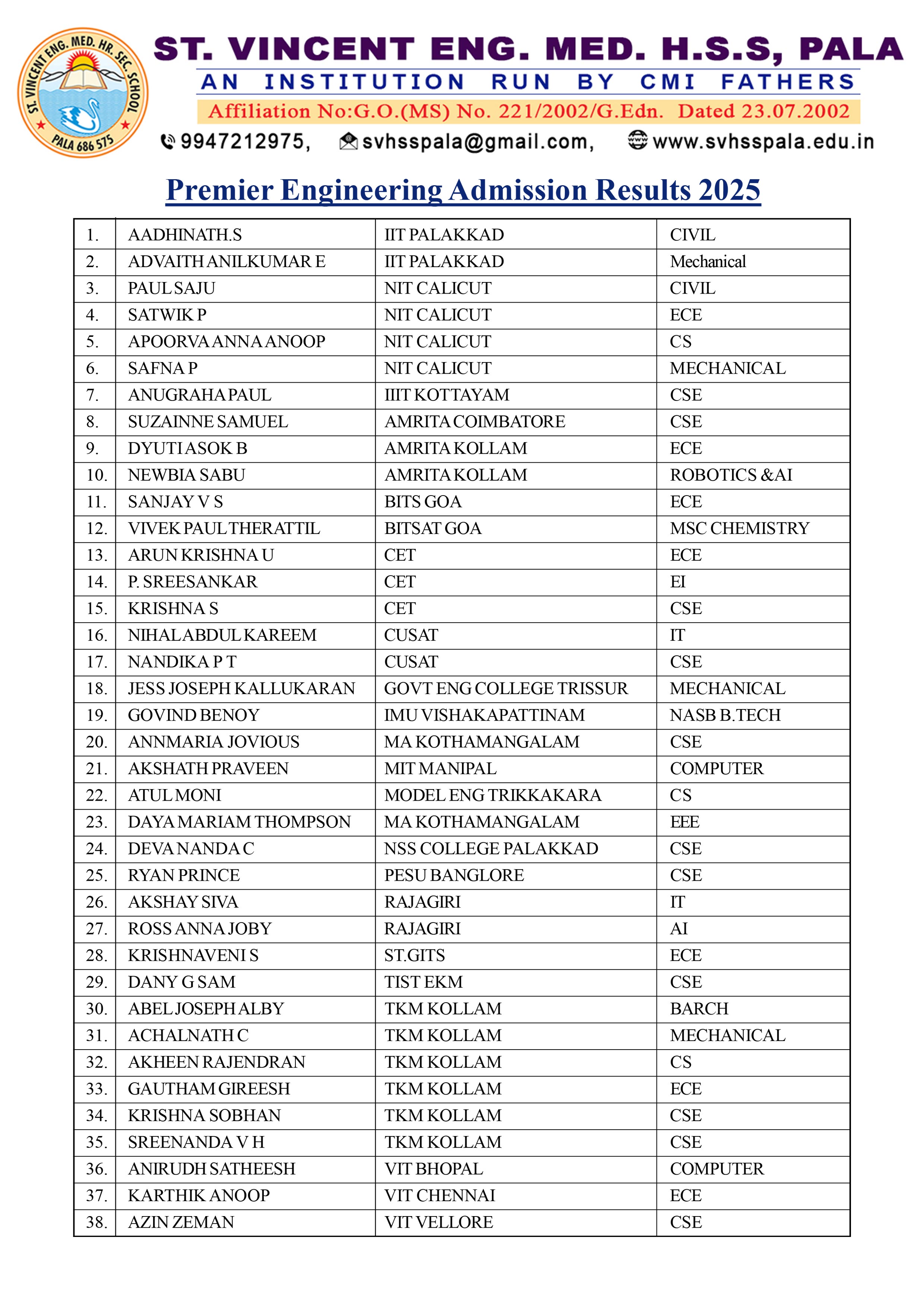 Our Students Who Secured Admission To the Premier Engineering Institutes in 2025